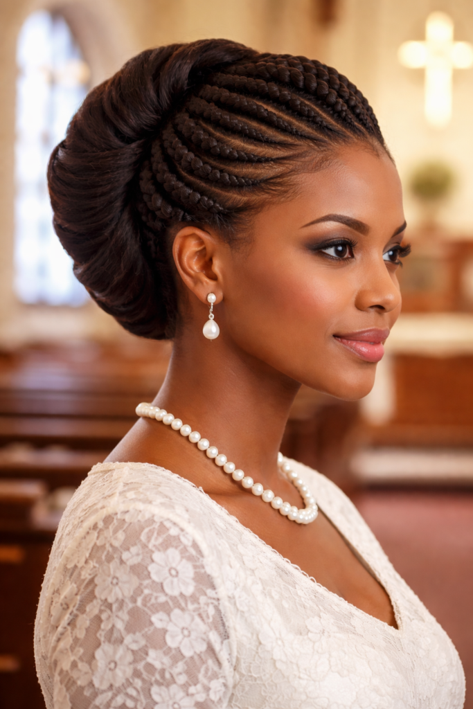 Braided to the Scalp French Roll Hairstyle African American Women in Christianity