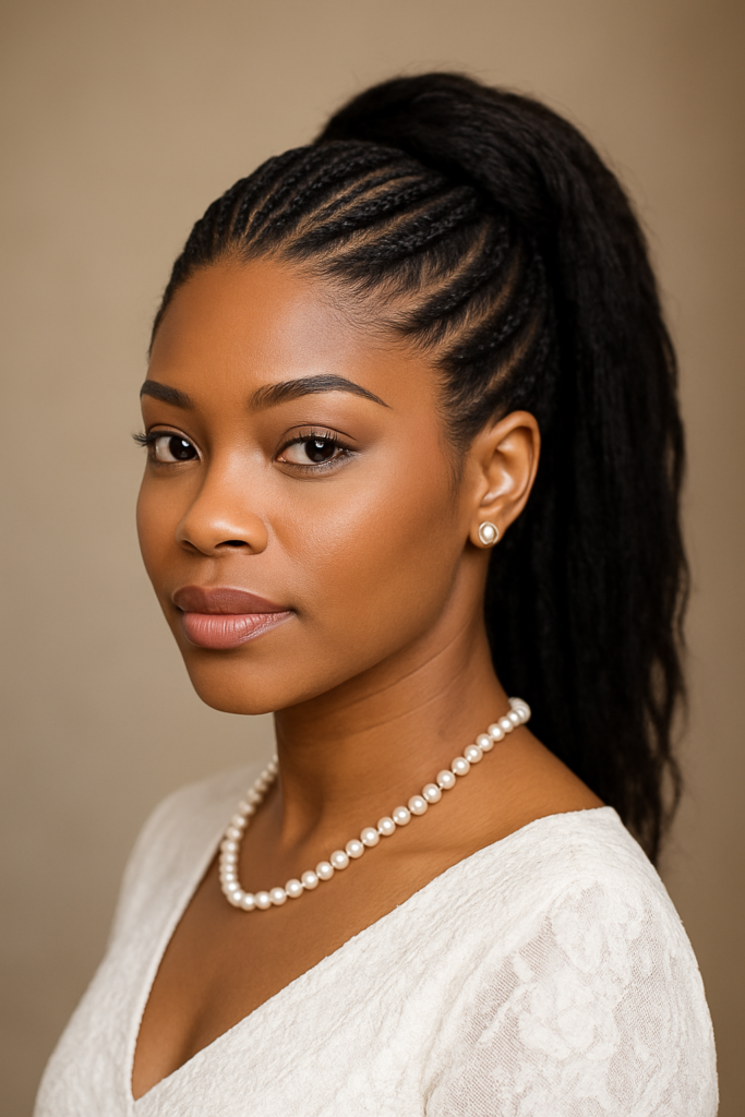 - Straight-Back French Braids: Several neat braids running from the hairline to the nape, similar to cornrows but braided overhand.