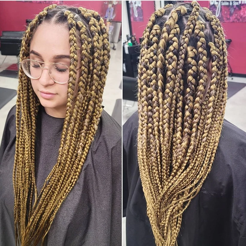 - Size and Density: Medium-sized box braids strike a balance between thin and thick braids, offering a full look without the weight or bulk of larger braids.