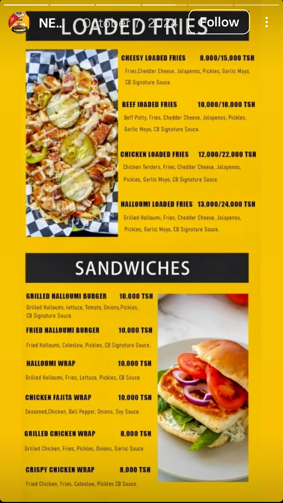 Cheesy Bite Arusha is a new fast food restaurant in Arusha located in Njiro. It specializes in American-style fast food, featuring burgers, fried chicken, and salads.