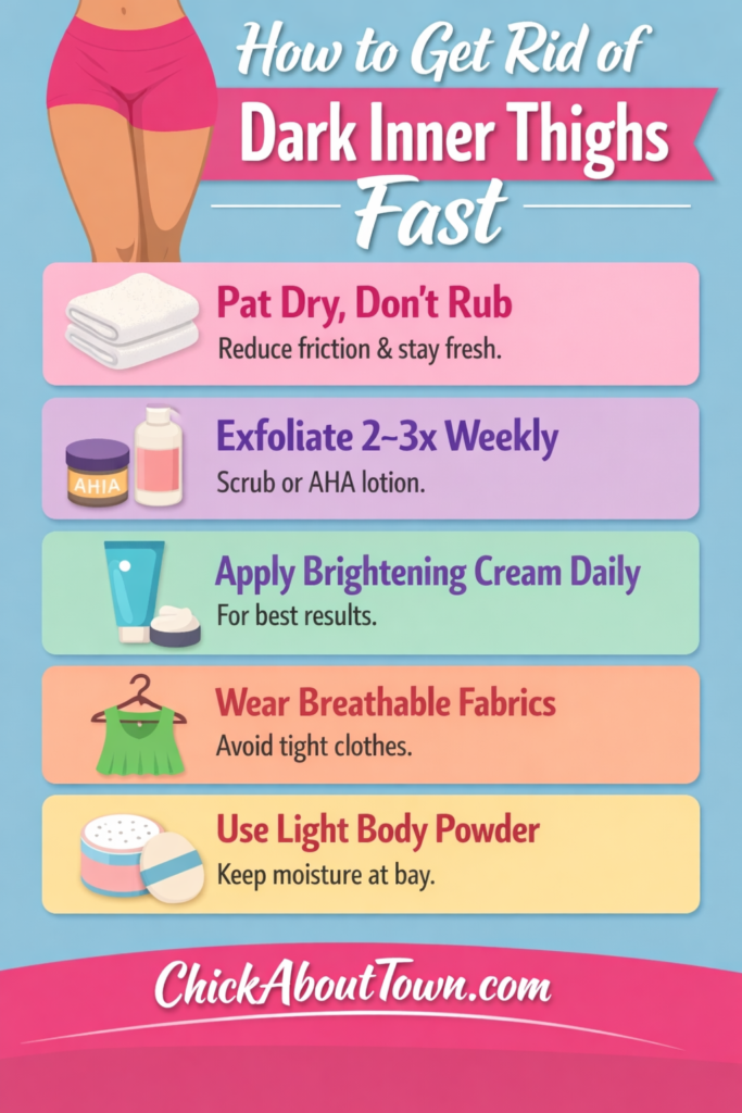 Start incorporating these tips today, follow the routine consistently, and you’ll gain smoother, more even-toned inner thighs that give you confidence in shorts, skirts, and swimsuits. Don’t forget to try one of the brightening creams mentioned—you might find it becomes a game-changer.