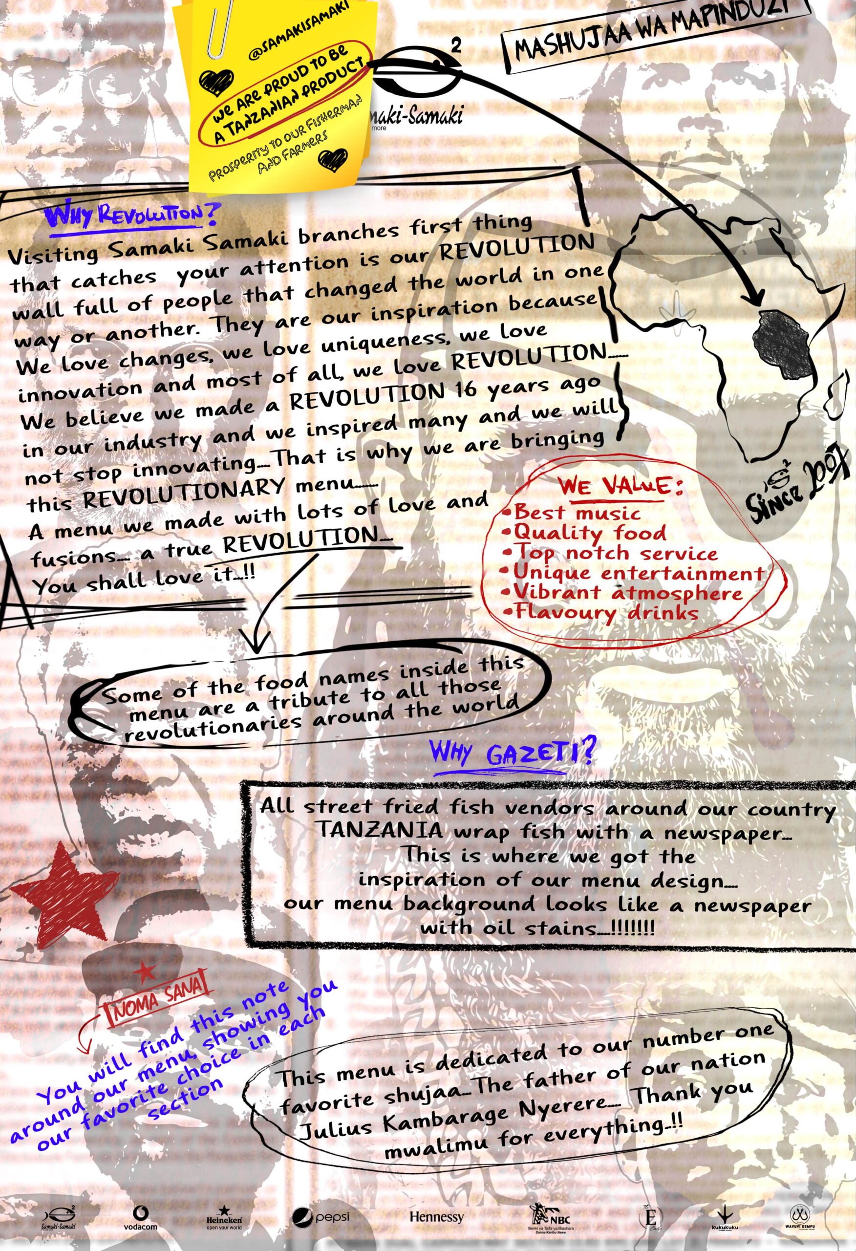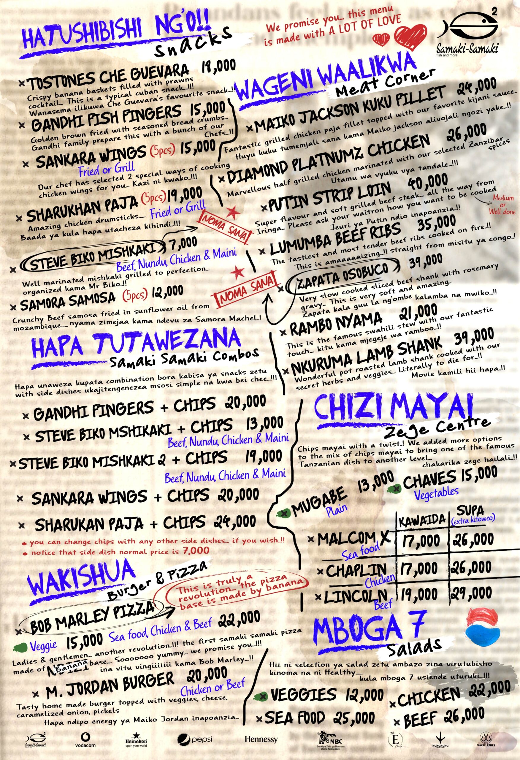 If what you are looking for is the Samaki-Samaki Dar es Salaam menu, here you go.