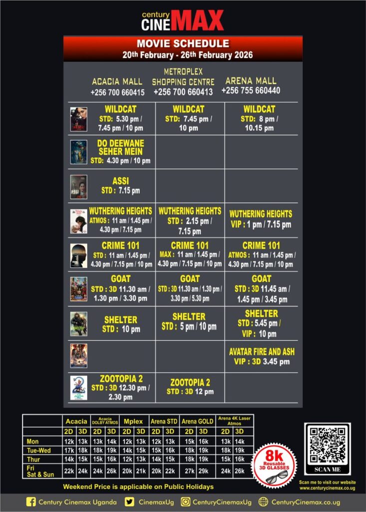 Tue. & Wed.: UGX 17,000 (2D & 3D)
