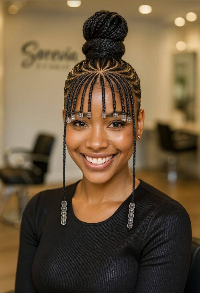 Feeding the braids into stylish updos or high ponytails is another way to make a Mwongezo hairstyle unique.